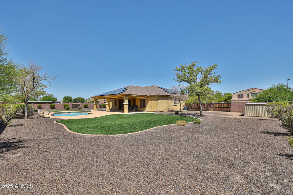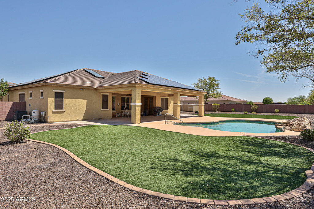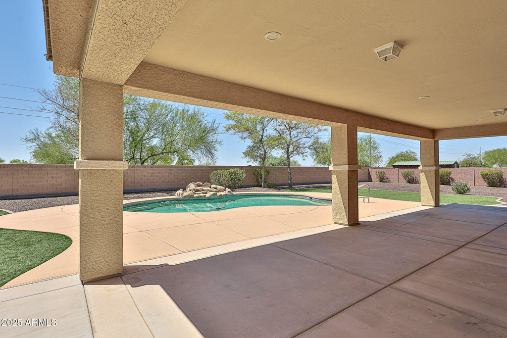 Coming Soon in Sundance! A rare 1.1-acre lot with Endless Possibilities!! Must see this spacious single-level home. 3,545 sq ft, 4 bedrooms, 2.5 baths, and a versatile layout designed for modern living + brand new interior and exterior paint.!! The primary suite opens to a covered patio, while two bedrooms share a Jack & Jill bath with walk-in closets. Bedroom 4 is oversized (previously two rooms) with two closets and its own private entry—ideal for guests, multigenerational living, or a home office. The massive backyard features a sparkling pool with water feature, grassy play area, double gates, extended driveways, and a partitioned space ready for a future casita or more. A rare find! RV Parking allowed with proper HOA approval.
