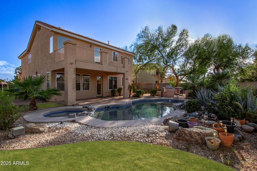 Homes like these are hard to find. Location and everything has been done. The first time I visited the homeowners I could not stand still, I had to go to the backyard. It is unbelievable. An oversized, premium lot backs to beautifully maintained common area. It is made for outdoor enjoyment. Pool & Heated Spa surrounded by entertainment area of two-sided outdoor fireplace, BBQ and a built in stove and fridge. You will be ready to open the back door when you walk in. Original owner has installed engineered hardwood flooring and travertine thru out.