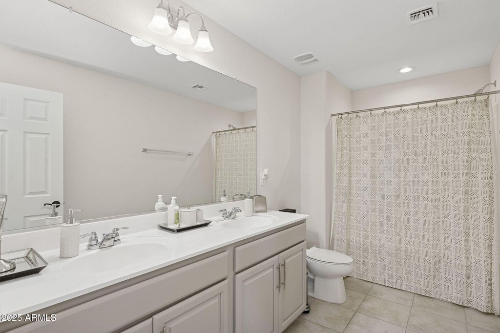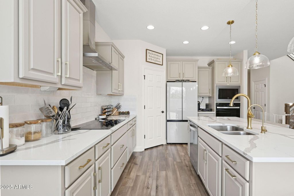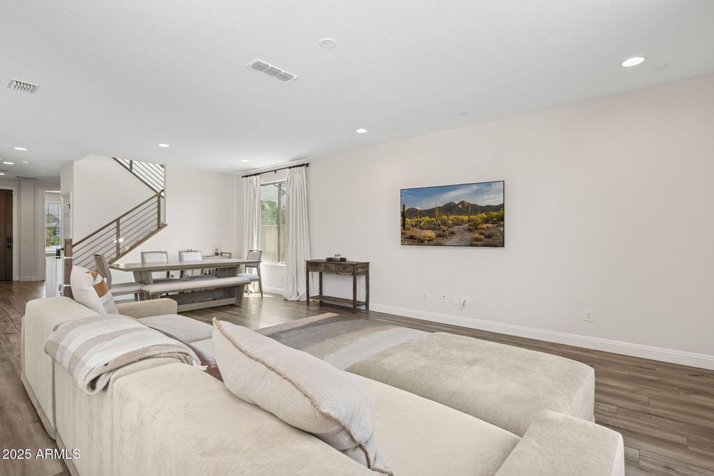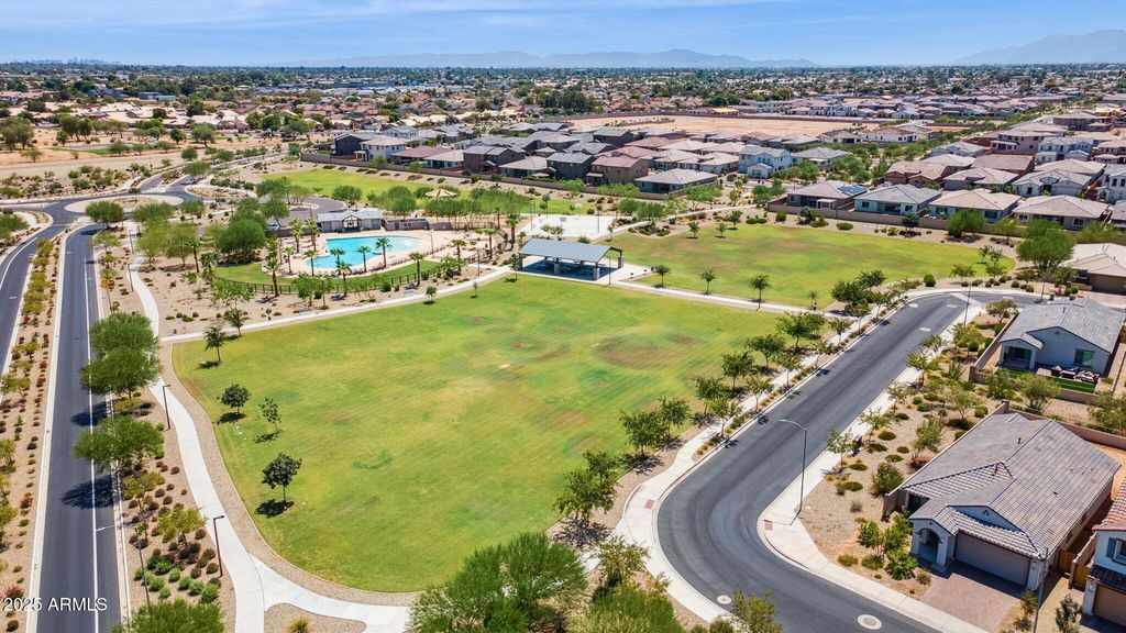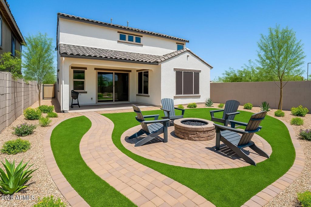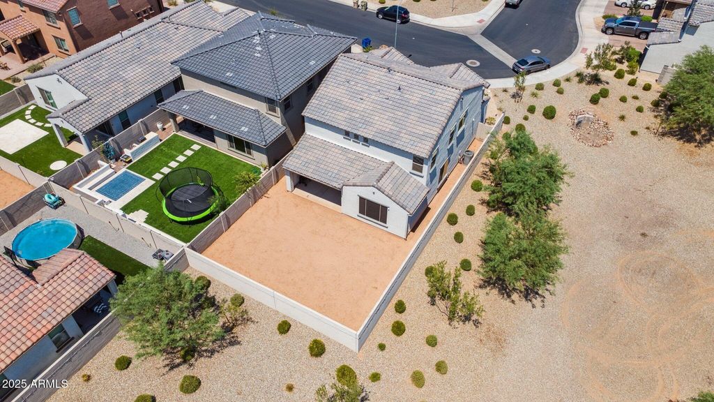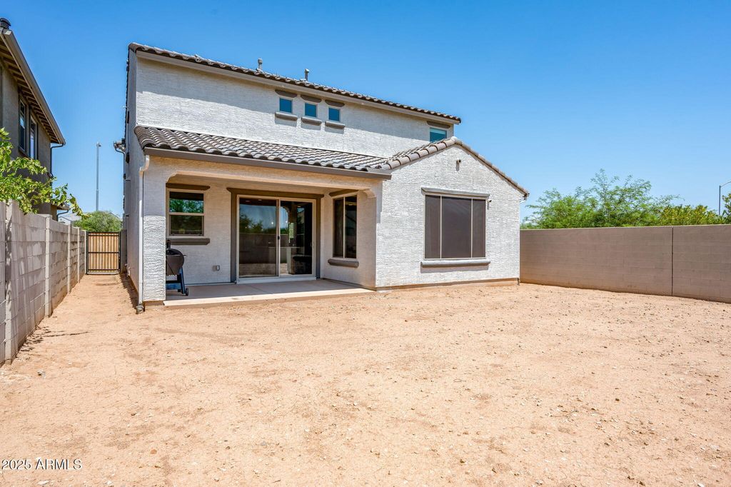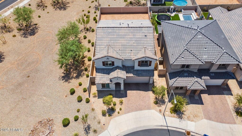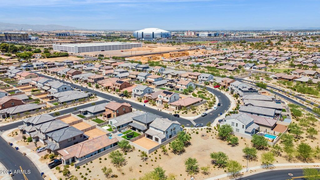 Featured on ABC15 Arizona Real Estate Essentials. This 2023-built Pulte Home is move-in ready and filled with over $60,000 in thoughtful upgrades designed for comfort, style, and everyday convenience. Perfectly positioned on a premium end lot, it offers more privacy, added natural light, and a large backyard that's ready to be transformed into your dream retreat. Transferable builder warranties provide added peace of mind, making this home as practical as it is inspiring. Step inside to discover a chef's kitchen that blends function and craftsmanship, which Pulte Homes is known for. Calcutta quartz countertops, soft-close maple cabinetry with crown molding, upgraded hardware, and a stylish backsplash elevate the space. Smart features, a soft water system, reverse osmosis, and a luxury appliance package add modern convenience to the everyday. The open floor plan is enhanced by luxury vinyl plank flooring, custom Pottery Barn drapery, and upgraded window shades that bring a polished finish to the heart of the home. On the first floor, you also find a flex room and a powder room. Leading you upstairs is a beautiful modern wood and metal railing that opens to a spacious den filled with natural light and flexibility to use as a playroom, media lounge, and more. The primary suite features a framed walk-in shower with upgraded tile, and the extended rear living area offers more space for gathering and entertaining. Surround sound audio and a mudroom with a built-in bench and storage add convenience and ease to daily living. The neighborhood was built for connection and recreation with its basketball courts, walking paths, and sparkling community pool complete with poolside bathrooms. And when it's time to step out, WestGate's top restaurants, shopping, and entertainment venues are minutes away, along with the excitement of State Farm Stadium, home to the Cardinals. Enjoy the comfort of a beautifully upgraded, like-new home without the wait of new construction.