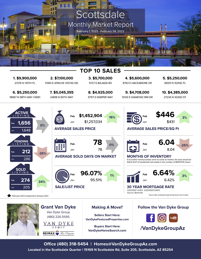 Average Sales Price: January 2023 > $1,257,034 vs February 2023 > $1,452,904 = 16% increase
